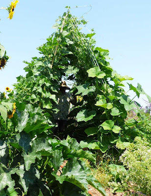 I got my squash, bean, tomato, and cucumber beds covered